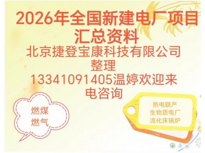 北京捷登宝康科技有限公司整理出《全国电厂项目汇总资料》,本资料适用于电力辅机