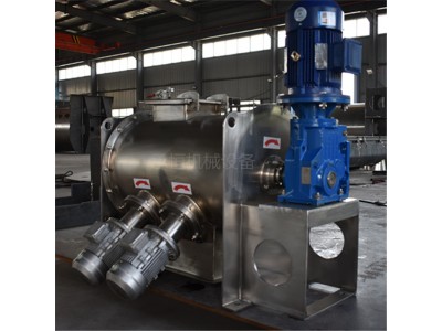 2.该机为圆型的卧式筒体,搅拌轴上有错位连续安装的犁刀,具有独特的结构,运转平稳、质量可靠、噪音低、使用寿命长、安装维修方便。