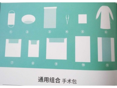 手术包配置:一次性使用医用口罩1个、一次性使用帽1个、器械盘套1条、镊子1把、擦手巾(40*40cm)4块、一次性使用手术衣2件、脚单(加强型)1条、边单(加强型)2条、头单(加强型)1条、一次性使用医用垫单1条、一次性使用包布1条。