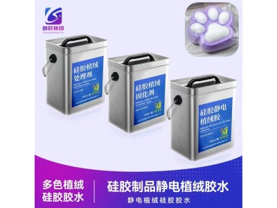 硅胶豹纹植绒底胶水 多色植绒硅胶胶水 套色植绒静电硅胶底胶 硅胶底胶植绒处理剂
