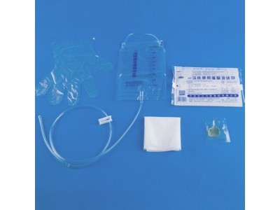 【结构及组成】:本品由基本配置一次性使用灌肠器、一次性薄膜检查手套、一次性使用治疗巾、一次性使用包布、医用脱脂纱布叠片、托盘等组成。