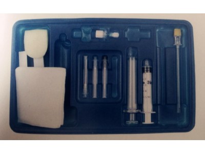 【结构及组成】:本品由一次性注射器、玻璃注射器、纱布块、药液过滤器、一次性刷子、国标手套、针头、腰穿针、包布、洞巾、敷料贴、托盘、治疗巾组成。