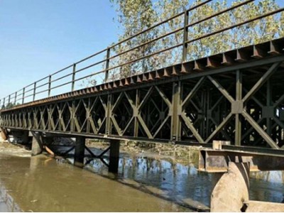 在实际使用过程中,钢便桥面临诸多挑战。自然环境中的雨水、潮湿空气、酸碱物质等会不断侵蚀钢材,导致钢材锈蚀,削弱其强度;长期承受车辆、人群等荷载,结构部件容易出现疲劳损伤、变形甚至断裂;而突发的自然灾害,如地震、洪水、强风等,愈会对钢便桥造成严重破坏。这些因素都会使钢便桥的承载能力下降,无法达到使用需求,甚至可能引发稳定事故。因此,为了钢便桥的稳定性和不怕久性,延长其使用寿命,对钢便桥进行适时、加固需要。 二、钢便桥的主要加固方法