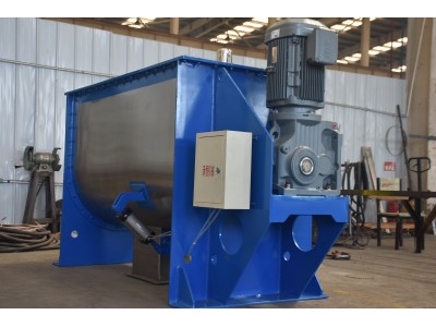 卧式螺带混合机可以有效率、快速的混合物料,卧式螺带混合机在搅拌轴的螺旋带运动下,使内外螺旋带在较大范围内翻动物料,内螺旋带将物料向内侧运动,外螺旋带将物料由两侧内向运动,使物料来回掺混,另一部分物料被螺旋带推动下,沿轴向径向运动,从而形成对流循环。由于上述运动的搅拌,物料在较短时间内获得快速均匀混合。