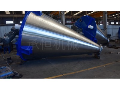 立式锥形螺带混合机能够进行液体与液体、粉体与粉体、粉体与颗粒、粉体与片状的物料混合,设备由传动部分、立式螺条、倒锥形桶体组成,工作时螺带带动四周物料向上提升,物料在重力的作用下