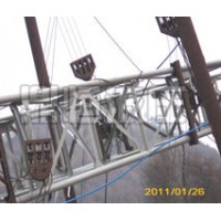 (3)液压提升设备的安装、就位液压提升设备可以分别安装、就位。当所有油路全部接通后,让千斤顶处于松卡状态,先进行全过程试验2^-3次(不加压),然后再进行额定油压试验,观察各油路系统有无泄漏等异常现象,同时检查液压控制柜工作是否正常。接着进行空载试验,检查液压顶的往复运动、提升杆的步进动作及上下卡头的卡紧性能是否可靠。发现不正常应作调整。一切正常后,就可将提升架底板与罐底板焊牢。至此,液压提升设备的安装、就位即完成。