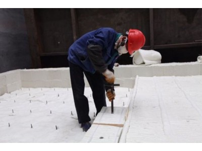 2.安装方式:施工安装的排列方式采用兵列式,模块顺向排列,两列纤维模块中间用一层20厚度的纤维毯对折后压缩使用弥补模块间的缝隙,并用U型钉保持固定。