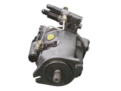 柱塞泵主要由传动轴、斜盘、柱塞、缸体、活塞和变量阀等零件组成。发动机(电机)带动传动轴旋转时,缸体与缸体内的多个柱塞一同旋转,每个柱塞头保持与斜盘接触,因斜盘与缸体成一定角度,因此缸体旋转时,柱塞在缸体中作往复运动,柱塞缸容积增大减小不断交替,液体受压强影响吸入、排出。多个柱塞快速稳定旋转即可为液压系统提供稳定的液压压力,由活塞产生泵效应向外输出,利用变量阀调节和稳定输出的流量及压力。