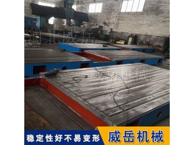 工件划线与装配调试:在汽车零部件生产制造过程中,对于毛坯件,需在铸铁平台上进行划线操作。平台表面清晰的网格线或通过专业划线工具辅助,能无误划出加工基准线,为后续机械加工提供明确指引,保证零部件加工精度。在整车装配环节,铸铁平台作为装配基准面,将各类零部件有序组装其上,利用平台上的 T 型槽或螺纹孔,配合螺栓等连接件,可牢固固定待装配零部件,确保各部件在装配过程中的位置精度,实现无误对接,提高整车装配质量与效率。在装配完成后,还可借助平台进行整车调试工作,对车辆的各项性能进行初步测试与调整,及时发现并解决装配过程中存在的问题。